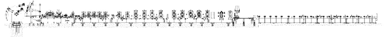 TF鋼管束冷彎生產線,具備中板開卷、校平、剪切對焊,輥壓成型,剪斷、碼垛等自動化流水生產功能。主機可生產腰高240mm,底寬130mm,厚度3-6mm多規格鋼管束制件;只需3分鐘,就可調整生產型鋼的高度、寬度規格;大型伺服跟蹤飛剪,在內首次實現了不降低速無廢料切斷。